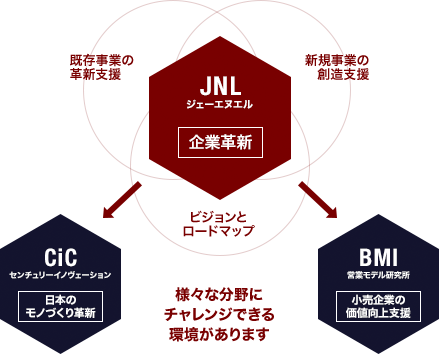 ジェーエヌエルでは関連会社(株式会社営業モデル研究所・センチュリーイノヴェーション株式会社)との仕事も密なので、「やりたい!」という気持ちがあれば、新しい分野にドンドン挑戦することができます。